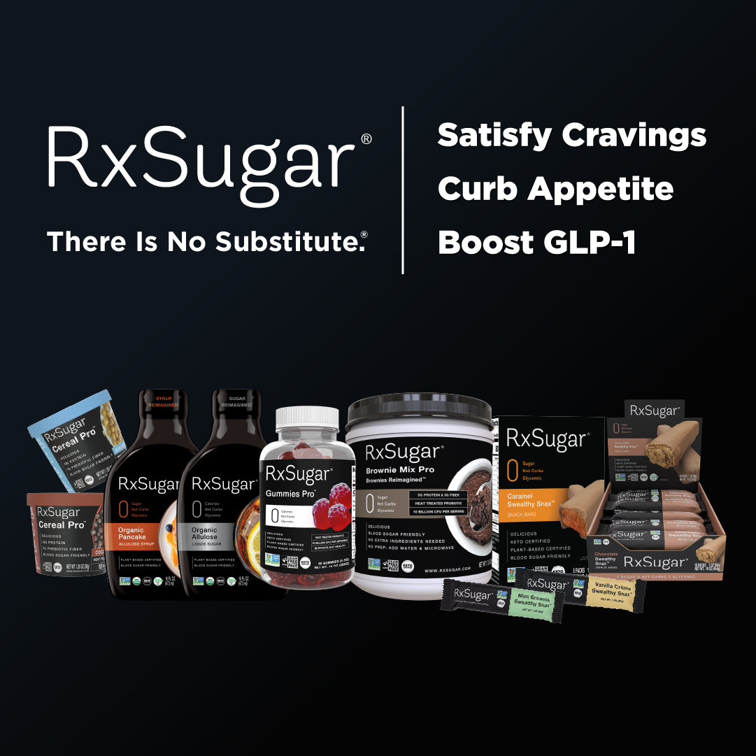 RxSugar® is made from Allulose Sugar, a low calorie plant-based sugar, is different from other sugars in that it is not metabolized by the human body in the same way as table sugar (sucrose). RxSugar® does not affect your blood sugar levels.
